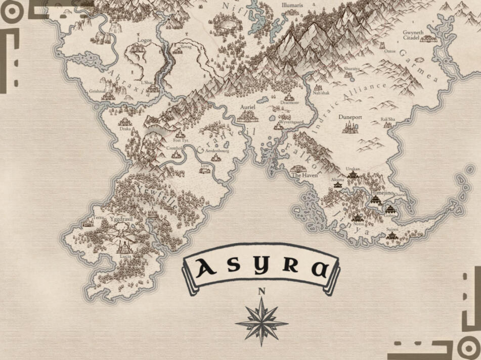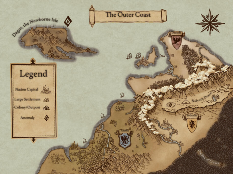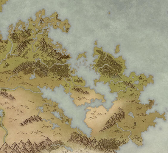 My first and firmest recommendation for if you're working on a novel. These pieces can be in either B&W or Sepia washes, as you see on the right, and will give your novel a professional-looking piece to go along with it. I'm also happy to go with darker shades of gray for the seas or keep them white. This is the style I use for my own writing!Starting at $50 USDThe price will remain there unless the scale and detail of your map is significantly greater than what's shown.