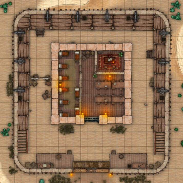 You can find plenty of free and useful battle maps online, but if the idea you have for your TTRPG group is a bit too niche...I'm here to help!Prices can range from $20-70 depending on complexity. Maps like the mansion here would be $70, while maps like the desert fort would be more like $20. More examples are pictured below!